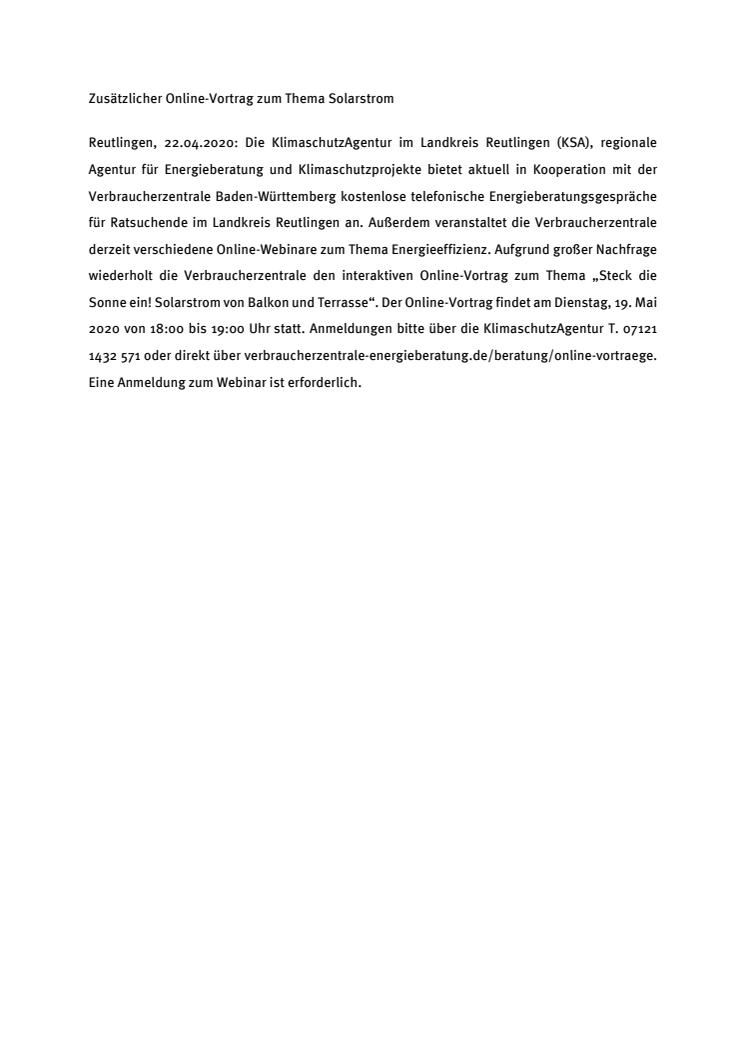 E-Mail an __email__ gesendet. Bitte klicken Sie den Bestätigungslink, um KlimaschutzAgentur im Landkreis Reutlingen gGmbH zu folgen.